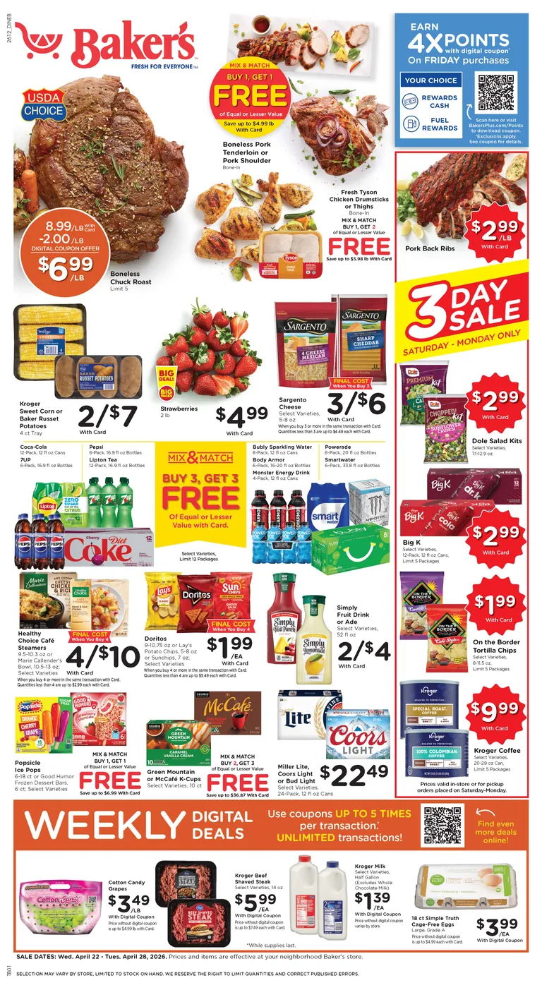 You’re viewing the Baker's weekly ad, valid from 04/22/2026 to 04/28/2026. Visit our website regularly to stay up to date with the latest deals and promotions from your favorite stores.